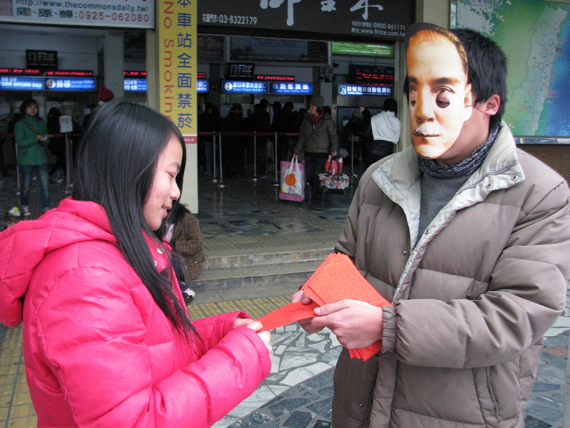 2/1小年夜上午十點,一群人在花蓮火車站及商家發放紅包,但紅包裡頭不是真的紙鈔,而且紙鈔上還印著國父遺訓:「平均地權、節制資本」,更有一群「國父」在火車站發紅包向返鄉民眾拜年。這是關心東部土地的民眾,在網路上發起的kuso搞笑行動,義務製作文宣的團隊希望藉由此活動引起地方對「東部發展條例」中「土地條款」的關注。