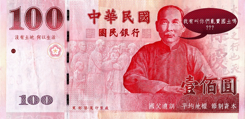 | 網友發起送紅包kuso行動,抗議東發條例亂賣國土。 |