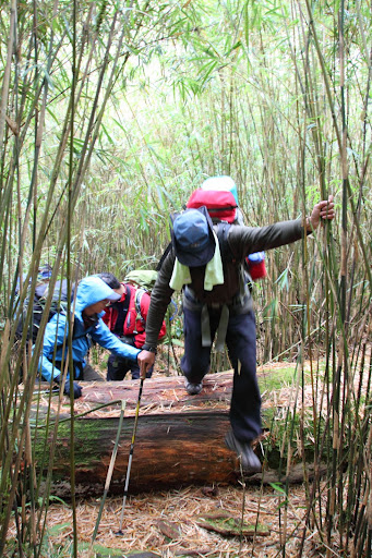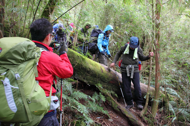 爬升八百公多尺,路況不難走只是倒木多,須爬上、爬下與彎腰而過,由於本