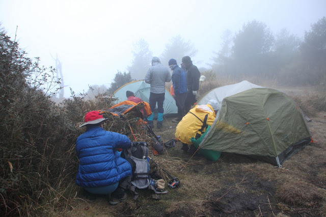 抵營地處已是雲霧濛濛,冷支支