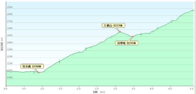 10:10 大水塔登山口(H2015M)→10:34 最後取水處(H1989M)→