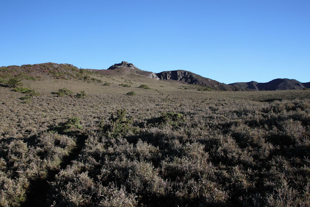 上後再下切的稜徑地形,當上至稜線一端可遠望剛剛走過高低起伏的稜徑與