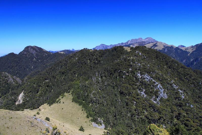 陡上30分鐘後回望來時路與雪山及山巒稜線