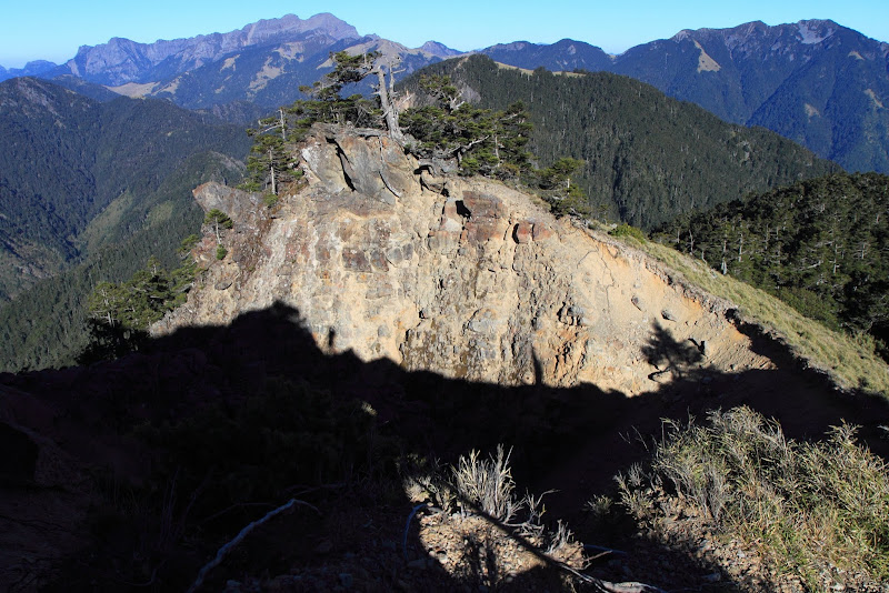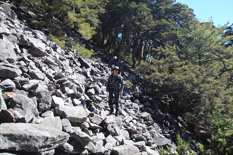 營地,是本次縱走路程較為耗時的路線。自營地輕裝約1小時的陡上行走後,上抵褐色地質