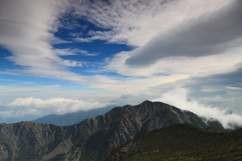 往盆駒山下切時另一方雲開間的稜線