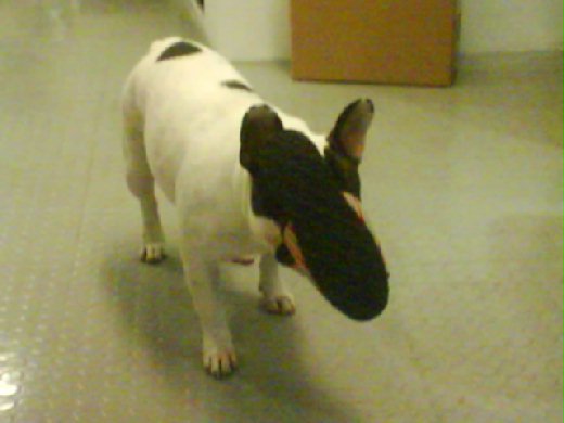 老闆有隻狗叫做BUGGY,是隻很酷的法國鬥牛犬,法鬥的下顎強而有力,很多東西都可以輕易的咬斷,包括公司很多皮椅...都被啃的亂七八糟。 跟其他狗一樣,BUGGY很愛亂咬拖鞋,不過只有我們老闆治得了它,如果BUGGY在咬拖鞋,其他人想要阻止,就會落到被BUGGY咬的下場。BUGGY也很聰明,只要看到老闆來了,本來死咬著不放的拖鞋,會因看到老闆而自動鬆開嘴巴而掉下來,所以就算老闆想要教訓牠,卻常常因為沒有現行犯的證據而作罷。 不過那天,BUGGY卻傻傻的咬著拖鞋,被老闆教訓了。 因為,牠...........被拖鞋矇住眼睛而失去了視力.......,這..應該算是活該吧。 |