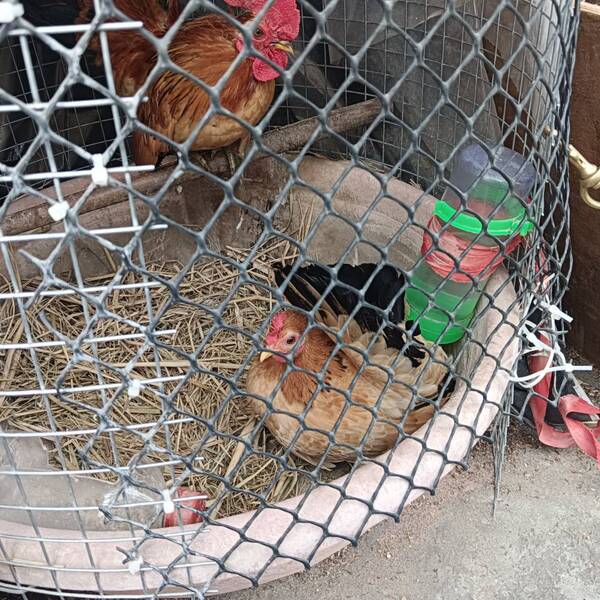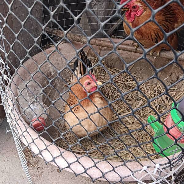 孩子自從去年暑假一直到公園看鴨子後,就想養鴨子....... 有鑑於鴨子需要的空間更大,且得有水池,不容易達到.... 於是,看看小鳥....無意間發現有小雞,且個頭很小,不需太大的空間 就傻傻的買了一對。(查了半天,應該是玲瓏雞無誤。) ---------3-4個月後,竟然母雞開始生蛋啦! 意外驚喜呀!