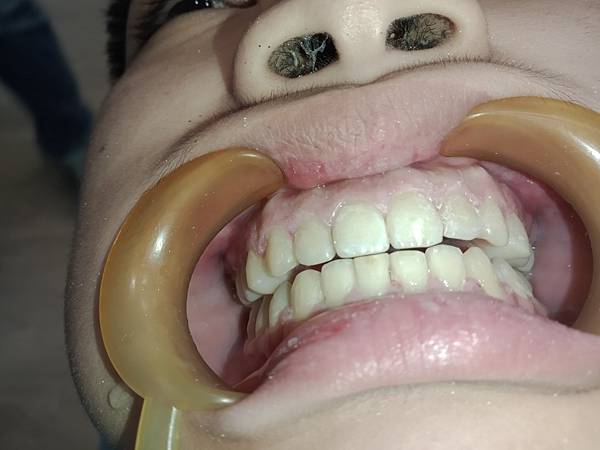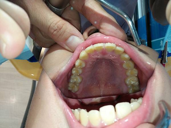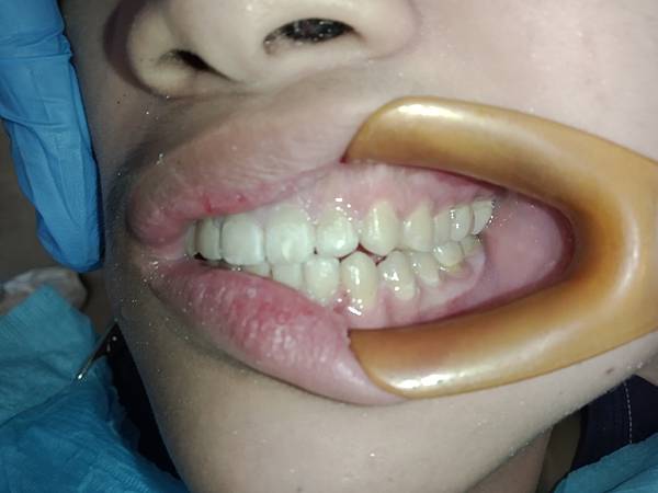 患者因牙齒有點暴和嘴巴經常破皮加上牙縫有蛀牙來就診,家長希望能改善牙齒排列,經醫師說明和印模後得知,確實是因為牙弓上下落差太大,導致咬合干擾,才會經常性咬到臉頰、破皮,牙齒傾倒到舌側所以導致直接塞牙縫,形成大臼齒牙縫蛀牙。 建議做矯正調整咬合和牙齒排列,但骨架落差部份,需靠做牙齒來縮小落差,使其能對合的位置較佳。