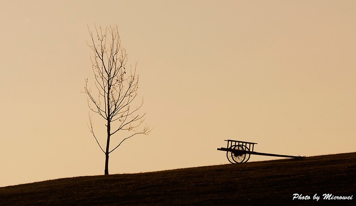 〈壩上高歌(之二):莞爾一笑〉樹問:爾本安處於農舍繁忙之家,何因行駛到無人之跡的山巔之上?車問:君本樂活於水草豐壤之地,何故獨樹於暑熱乾旱之沙帽之峰?樹望著車,車望著樹,莞爾一笑:我們都瘋了嗎?哈哈!且看山下密密麻麻一群撐著相機的不也是全瘋了?