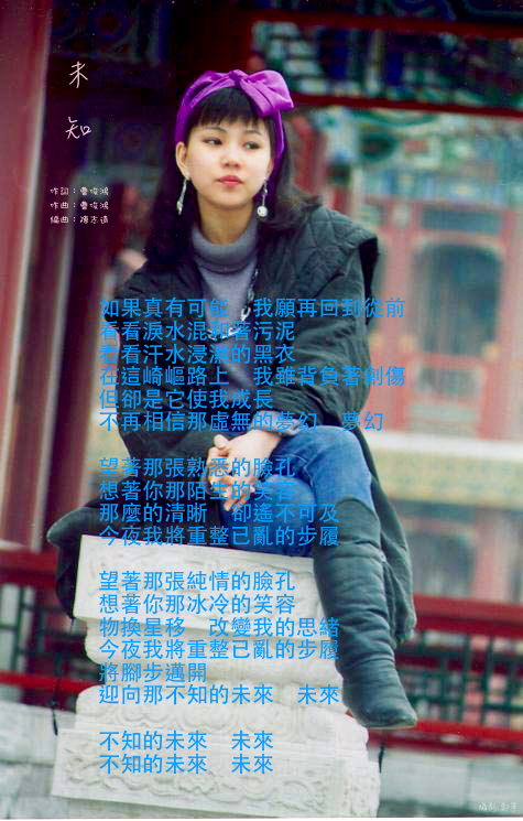如果真有可能 我願再回到從前 看看淚水混和著污泥 看看汗水浸濕的黑衣 在這崎嶇路上 我雖背負著創傷 但卻是它使我成長 不再相信那虛無的夢幻 夢幻 望著那張熟悉的臉孔 想著你那陌生的笑容 那麼的清晰 卻遙不可及 今夜我將重整已亂的步履 望著那張深情的臉孔 想著你那冰冷的笑容 物換星移 改變我的思緒 今夜我將重整已亂的步履 將腳步邁開 迎向那不知的未來 未來 不知的未來 未來 |