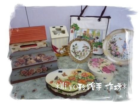 miyo將拼貼彩繪師資班的作品稍作整理這套課程一共有15件作品除了餐巾紙的拼貼方式外棉紙與專用紙也是使用的素材運用了不少彩繪的技法讓作品更有特色就連磁盤也能完美呈現