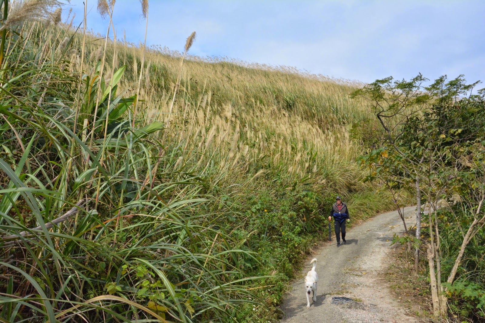 大同山的風景,讓我驚訝!路兩旁植有台灣山櫻花,樹葉已全數掉落,有幾株早熟的櫻花,已耐不住春意,早已嫣紅姹紫的盛開著,就像思春的少女,惹人憐愛!同樣是綠葉落盡的木棉,則是高傲的挺立在路旁,像是春風少年兄,靜靜的等待春天的到臨。上得山頭,滿山的芒草,隨著凜冽的北風起伏。在藍天白雲下,北風呼呼的唱出勝利的歌曲,芒草則在生命的終點播撒出更多的種子,這場永無止境的生死纒鬥,不知誰勝誰負?就這樣永遠的循環下去。