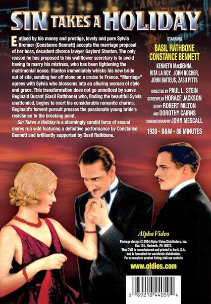 Rathbone的加盟也幫助了這部電影的邪典地位。[Sin Takes a Holiday]標誌著他早期好萊塢生涯的結束…