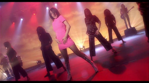 為艾莉婕和樂團在舞台表演這首歌.