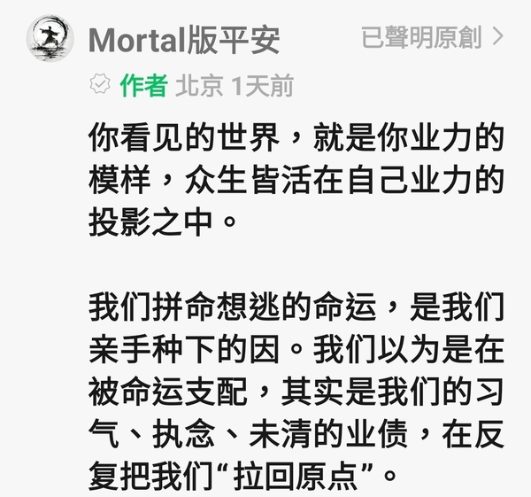 命运,不是一成不变,业力,也不是绝对枷锁,真正的修行,是你愿意一点点,成为那个新的自己。你变了,一切才会跟着变。当你不再共振旧业,你才有新的人生可能。