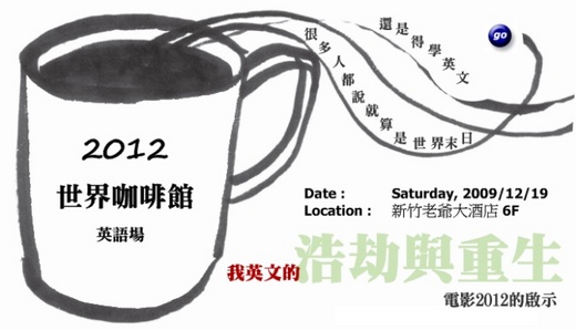 不管你看過<2012: 世界末日>這部電影了沒,聊聊人生最基本的問題,in English,會觸動最敏感的那條語言神經。話題很有意思,人很有意思,餐點很美味,這三個理由,還不夠你來走一趟World Cafe?嘿,一定要這麼hard to please嗎?
