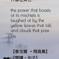【泰戈爾 。飛鳥集】權勢以它的惡行自誇, 落下的黃葉與浮遊的雲片卻在笑它。