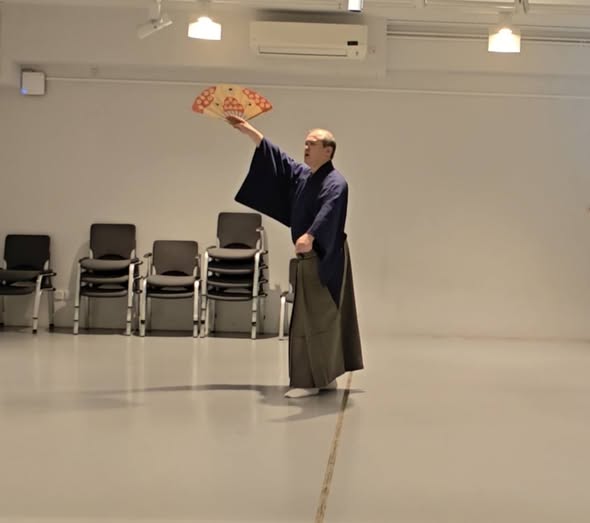 今天學的歌謠是吉野天人. 這首歌謠非常短, 節奏爽朗. 比起船弁慶來說, 輕快很多, 仕舞的型跟前一首船弁慶差不多, 因而很快上手.