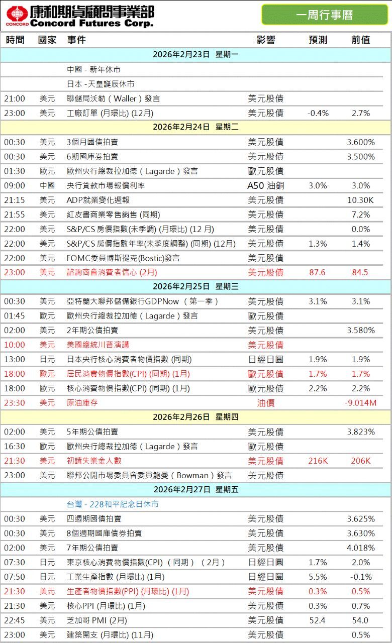 康和期貨重要數據行事曆20260209-20260213@康和期貨國內外期貨選擇權優惠徐雅如#外期海期期貨手續費