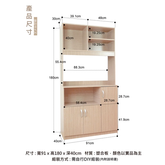 尺寸:寬91cmX 深40cmX 高180cm