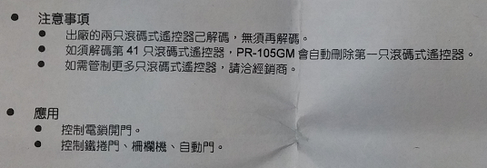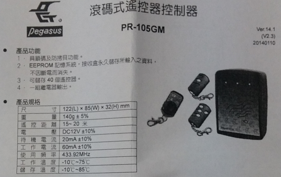 鵬驥PR-105GM說明書