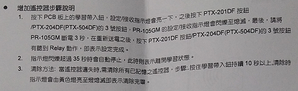 (長按按鈕將所有學習搖控器清除)