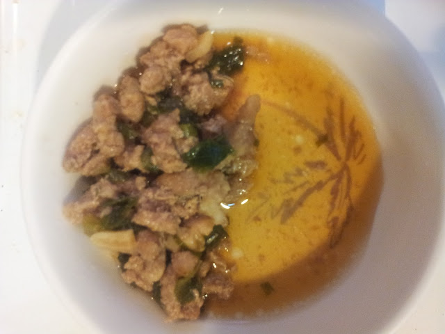 去年12月開始幾乎一天煮三頓料理伺候家人(自己煮完就吃零食或去買東西吃),看到掛川絞肉,我腦海只出現鬍鬚張的滷肉飯,所以不作他想就作了肉燥。但我連查一下肉料理食譜都不想,就把現有的蔥跟大蒜切小丁,然後倒入一點有機蔭油,還有黑龍紅燒滷肉醬(這平價超市買的好貨!),稍微讓醬汁跟料都均勻分布後就放入我最愛的大同電鍋蒸,真的醬、料都隨意,蒸到肉熟了就好。做好的肉燥可以拌入煮好(無不良添加物的)粄條,或是飯、蔬菜粥,一次只要熱需要的份量,剩下的就可以冰起來繼續吃,可惜我家的肉燥都無法放到隔天就沒了。