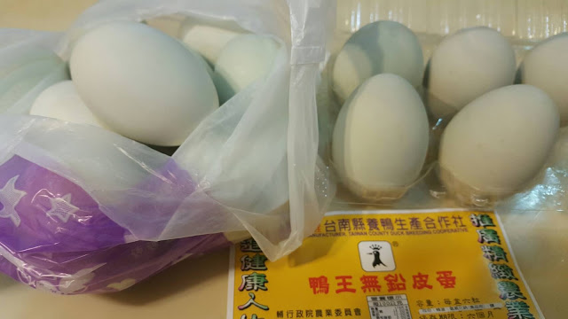 老闆娘說,她娘家養的鴨蛋,本身就是無毒鴨蛋,早些年他們說是有機鴨蛋(鴨王皮蛋),因為後來有認證標章規定,有機鴨蛋不只鴨要吃有機飼料,鴨子喝的水也要經過檢驗、鴨子走的土壤都要通過檢驗,所以他們稱自己為無毒鴨蛋、無毒皮蛋。她還教我說有些皮蛋上面寫「無鉛皮蛋」,即使它不含鉛但是含銅啊?幫助皮蛋速成的金屬百百種。