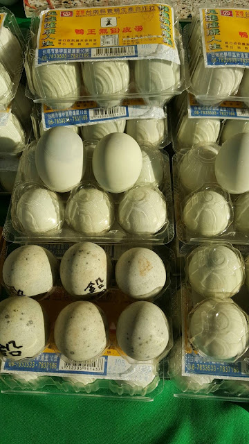 問了老闆娘,買了一條苦瓜份量所需要的兩顆鴨蛋,看著旁邊的皮蛋,就順口問了:「人家說皮蛋臭的原因是因為用馬尿泡的,是這樣嗎?」