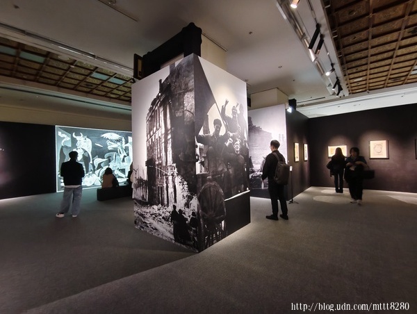 除了介紹畢卡索及作品,最讓人眼睛一亮的,是沉浸式的光影體驗,從畫中跳躍出來的《格爾尼卡》,加上現場音樂,更是讓人感到戰爭的無情。