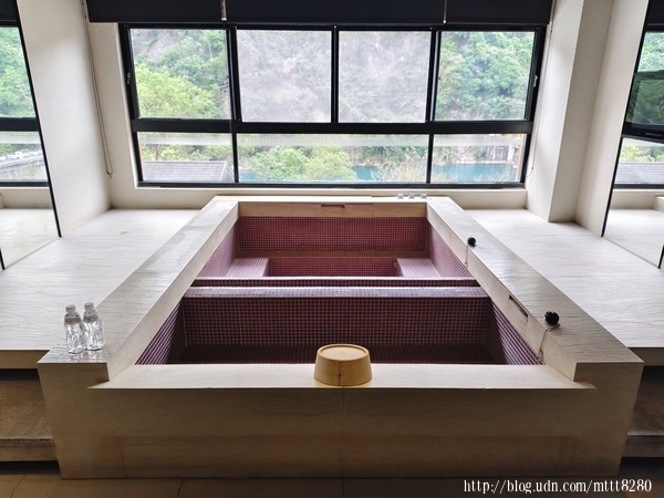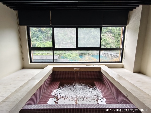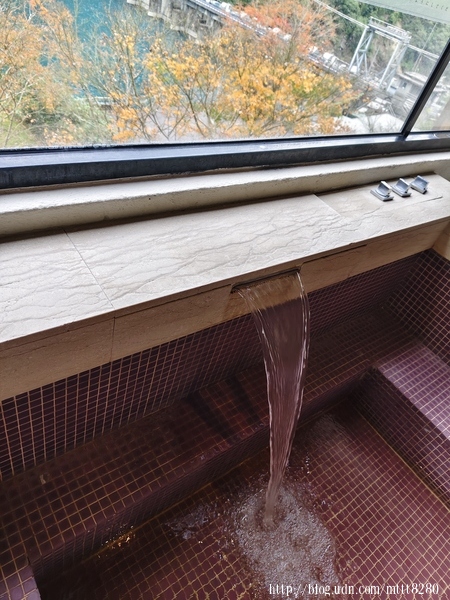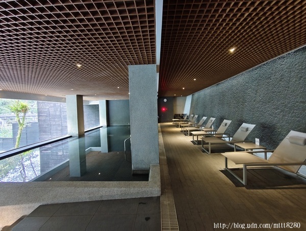 璞石麗緻有幾種泡湯的地方,像是大眾湯和私人湯屋。我跟朋友在私人湯屋泡湯,從這裡就可以看到外面的景色。 ![]() ![]() 什麼叫「碧水」,看這顏色就知道。