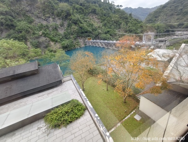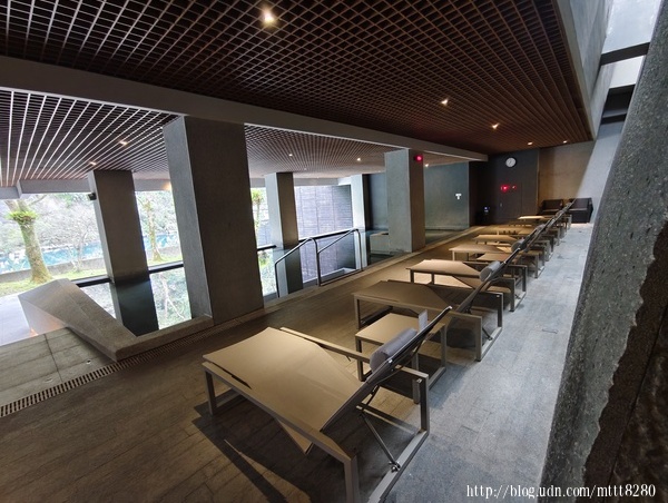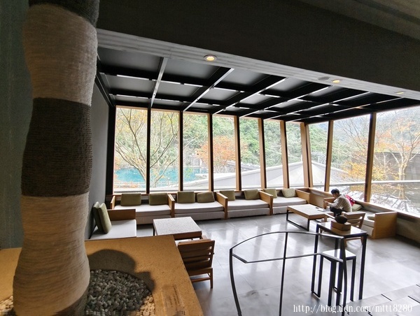 大廳還滿廣大,畢竟是在烏來,地曠,空間也大,從這裡看著外面的景色,葉色和水色自成一方空間,假裝自己出國一下。