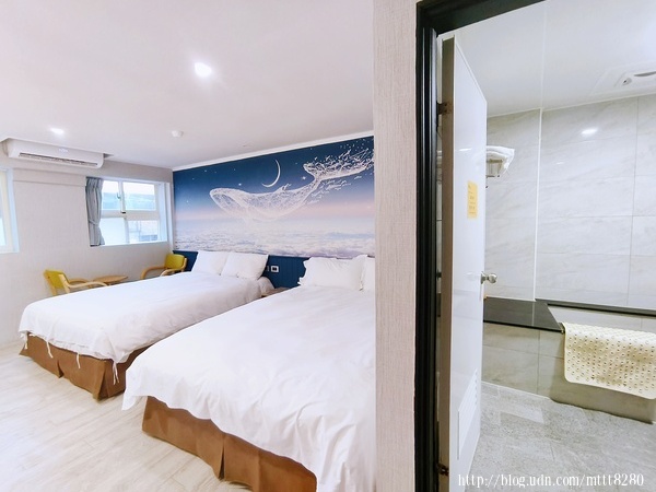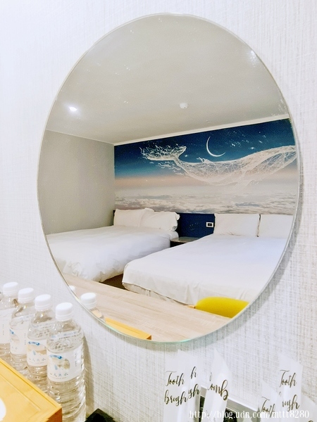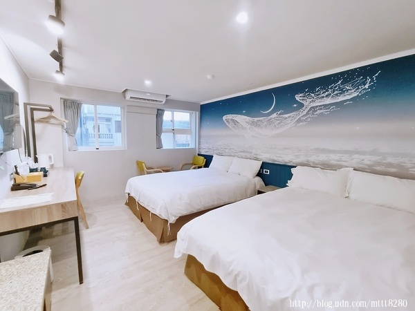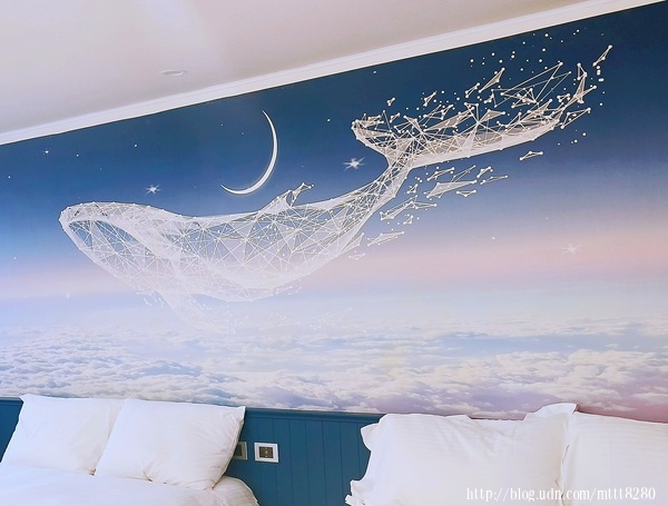 地址:262宜蘭縣礁溪鄉礁溪路五段156號 電話:039883769 我承認,我完全是因為這隻鯨魚而對這間房間有好感XD~~看著鯨魚在雲層上飛翔,夜空還有一輪明月,完全是我想像中的世界。聽到這壁紙在蝦皮上也有賣,讓人好心動,也想買回家貼在房間了。