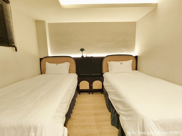 雙人房的床是分開的,和朋友兩人各據一床。