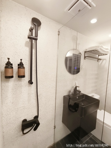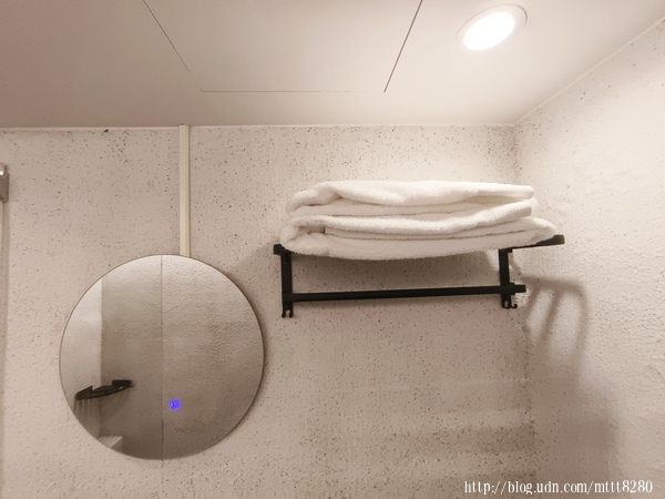 角落的兩個杯子,上面的LOGO是唯二的LOGO。 廁所跟淋浴同個空間,中間有玻璃隔起來。這種色調有種金屬風。 倒是這個毛巾擺得有點高,身高矮些的可能要墊起腳尖比較好拿。