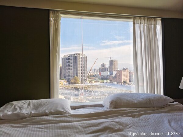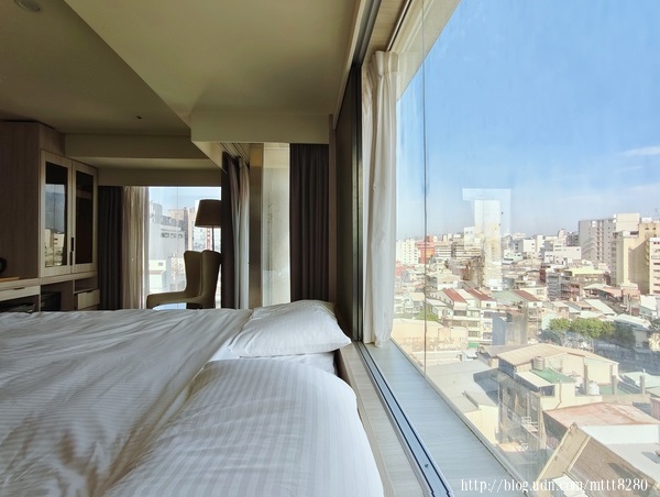 茶覺旅離台中車站超近的!出站大概三~五分鐘就可以抵達。這裡是我跟朋友住的房間,從裡頭往外看去,還可以看到台中車站呢!