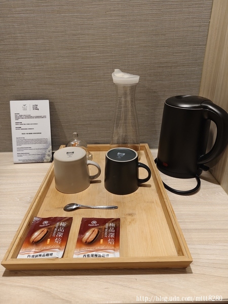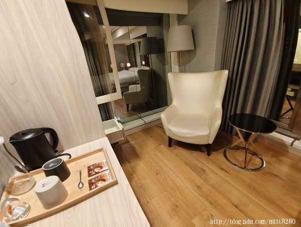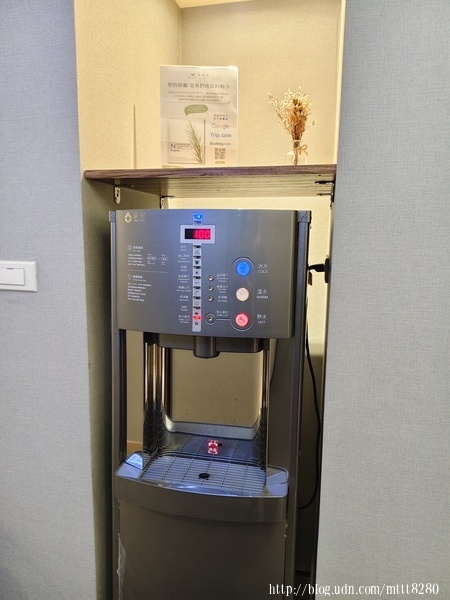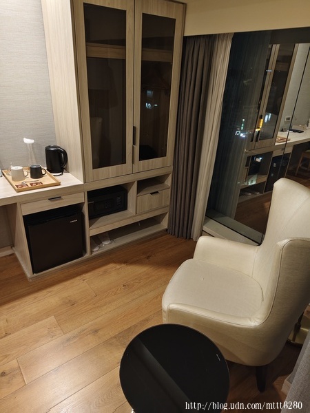 房間有三合一咖啡跟杯子,想要開水的時話,可以到外面的走道上去取用。 因為響應政府政策,落實環保,房間沒有瓶裝水,如果要喝水,在每層樓的5號房的對面都有飲水機。 椅子的對面就是衣櫃,可以將脫下來的外套、大衣放在裡面。 從北部到中部,也要幾個鐘頭,感覺有點累,晚上就可以來泡澡啦!