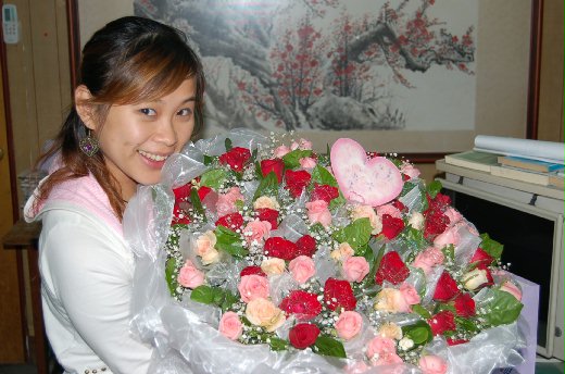 謝謝在工作上、在友情上給我繼續下去力量的昆,你的熱咖啡,讓我一整天都很有精神。以後我會天天對你笑,讓你可以有開心的心情,做完整天的工作。 謝謝我的好友趙小櫻,偷偷騎走我的採訪車「小綠」,幫它在過年期間被放沖天炮的死小孩炸壞的座墊換了新衣。以後,當我的屁股下坐著這個嶄新的坐墊的時候,我一定都會想到你.我的小綠也會感謝你,在小綠過了半年遇到下雨天破掉的海棉就吸滿水的窮困日子後,終於可以不用再「逢雨必驚」了。我一定會抽空,到五峰鄉山上去,看看你老爸特別為我養的山豬。 謝謝神秘的送花者。當我在生日還要上班,哀怨的趕稿時,送來九十九朵玫瑰花,讓我很感動。不過,下次請你在卡片上寫名字,不然我永遠不會知道你是誰。我問送花的人「是誰送的?」對方很酷的回答「我不知道,反正不是我」現在,這束花成為記者室裡人人爭相抱著照像的道具,每個人經過都會瞪大著眼睛在花旁走一圈,女生反應都是「哼,我要回家叫我老公檢討!」男人經過都說「哼,浪費錢!」謝謝神秘的送花者,你讓我的心情很愉悅。 謝謝幫我唱生日快樂歌的警察背背,小記者生日當天難得穿裙,不過僅限於這一天啦!以後看到我不可再吹哨子說「褲子太長,違規!開罰單!」囉! 當然囉,謝謝把我生下來的爸爸媽媽。雖然我老爸在我生日前一天打給我「念茲,明天晚上吃飯」時我很驚訝:「我爸竟然記得我生日?」後,下一句就立刻接「明天晚上要辦選舉感恩餐會,記得要來」但是還是很謝謝老爸老媽把我生下來。雖然沒有聰明伶俐,美麗動人,三圍32C、26、34,但也算是四肢健全、身體健康,謝謝你們把我生下來,讓我有機會看到這個美麗的人生,認識了那麼多很棒很棒的人。 謝謝我從高中認識到現在的小可愛,雖然我們沒有在一起,謝謝你一直都沒有忘記關心我,特地從台北下來陪我吃一頓飯。 謝謝硯,三年前在大陸工作仍透過人送花給我,今年則從生日前三天就開始打電話給我暖壽。 謝謝默默關心我給我鼓勵和支持的恭,有你在我旁邊,再多的挫折,我都有勇氣可以迎刃而解。認識你以後,我才知道「原來幸福有很多種可能」。 謝謝在blog前給我加油打氣的你,有了你們,我覺得「人生一定可以會是很美好的!」即便現在有風有雨,我相信,未來一定可以雨過天晴、海闊天空。希望我,也希望電腦前的你,都可以很幸福,很幸福!