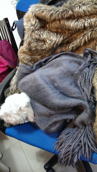 霸佔!!!! 我看到的時候當場笑出來,因為他根本盤算多時,只是在找時機而已xdd 上面披的那件灰色衣物是我在辦公室的披風~超暖,順手幫寶貝蓋上後, 才照了這張圖。