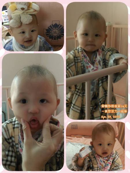 骨髓移植後第14天~食慾活力ㄧ級棒 今天病房終於被安排住進另外一位等待六月要移植的孩子來輸血,所以順便跟他媽咪分享移植經驗,但是為了保護寶貝,我全程都用簾子隔著病床,不讓人輕易靠近她,心中還是有點擔心寶貝的免疫力尚未恢復,醫生看來是比我們更不緊張,身為父母只能為孩子謹慎再謹慎,畢竟走到這一部真的不容易,我們一定要健康平安回家。