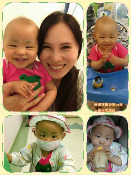 骨髓移植後第57天~第六次回診 今天ㄧ早不到八點半就搭車到醫院回診了,依舊先上五樓血液檢驗室抽血,可惜平常技術超好的那位醫師先去忙別的檢查不在,另一位檢驗師直接白話地告訴我,她沒有把握抽得到寶貝的血管,於是我們耐心等之前常幫寶貝抽血的檢驗醫師回來,ㄧ等就等到九點多,等待期間讓寶貝練習走路,她也走的挺開心的。幸好耐心等待是有代價的,等技術好的醫師ㄧ回來,ㄧ針就扎上,不到ㄧ分多鐘就抽好5cc的血,真是讓我佩服不已,這位醫師已經是媽咪我心目中的抽血達人了!然後回到門診等主治醫師看診時,寶貝不知不覺就在我懷中睡著,今天的血球指數也是很棒的數字,白血球4200,血紅素11.8,血小板13萬2千,然後巨細胞病毒的檢驗是陰性,巨細胞病毒是移植後很嚴重的感染因素,初期每週檢查ㄧ次,移植後三、四個月都是重點觀察期,每次做一次檢查就要飛走兩張小朋友,但是做檢驗才能提前保護寶貝,如果有驗出陽性就要趕緊治療,幸好目前檢驗多次,都是結果好的陰性,醫生這次看完報告無意中說了ㄧ句:「妳們很幸運。」媽咪我當下沒問醫師是什麼意思,但我猜想應該是指我們移植過程比其他人順利許多吧!然後寶貝恢復的情況也不錯,儘管這是我們不幸遭遇中的幸運,對於有健康孩子的家庭來說,我們是不幸的;但對於有重大疾病或罕見疾病、意外事故孩子、或無法等移植機會的家庭來說,我們又是幸運的,人生有太多事真的讓人不得不看開,我們從不知道在那個時機會遇見生命的難關,我們只是提前面對考驗,又幸運的暫時度過關卡,對於生活就像ㄧ條未知的小路,妳沒有往前走,永遠不知道自己會遇見什麼,但是微笑向前沿途總是會看見美麗風景,珍惜當下,不要留遺憾就足夠了,親愛的寶貝,讓我們繼續努力,期待更美好的明天。— 覺得意志堅強。