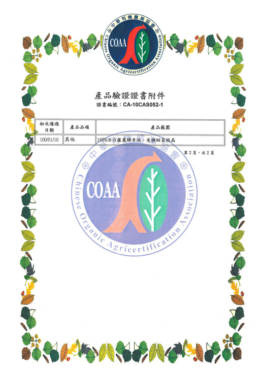 努力了很久 01.10 中華有機協會電話通知 認證成功了 從此 對生產流程的每一個小環節 要更加小心去執行有機的相關要求 這是對消費者負責任的一份心 從返台開始 請 台大醫學院生分研究所廖教授幫忙 從分析蘿麗酵素液開始 到做吃的安全的毒理動物實驗研究 與系列機能性的動物實驗 燒了不少銀子與心力和時間 接下來呢 當然是將這麼好的產品推到全世界去 EU 的 Jeffrey早在催促快做有機認證 否則進不了歐洲市場 2011 年將會把時間放在外銷市場上 當然在台灣的有機市場裡也會參與 前後近6年 從行外進入生技產業 跨這一步真不簡單 |