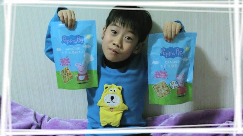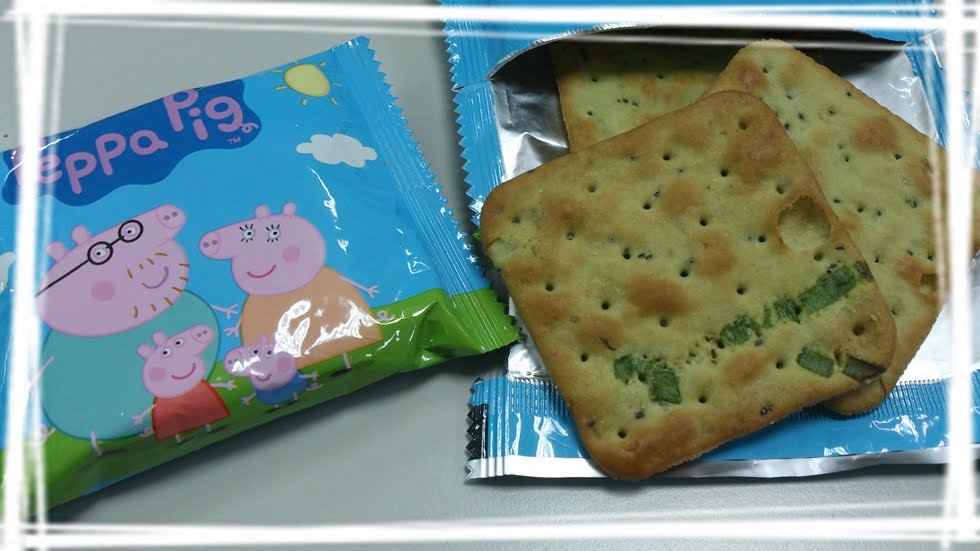 ▲趕快打開一包佩佩豬蘇打餅乾來解饞囉!