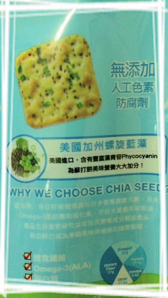 ▲先來介紹「青蔥藍藻蘇打餅」,特別添加美國加州螺旋藍藻,這新穎的名詞超酷的!