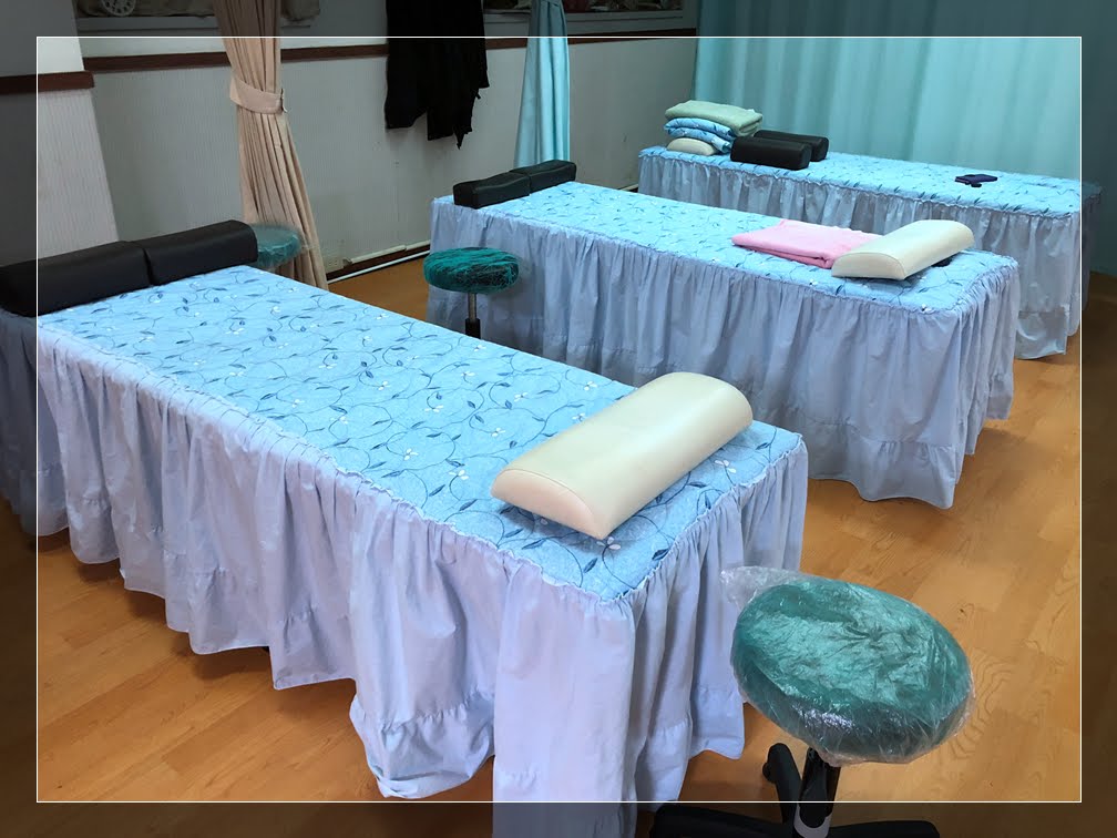 話說,現場每張床都有簾布可供拉起來遮蔽,如果客戶比較注意個人隱私,可以拉起來;如果沒有特殊要求,通常是展開的方式,畢竟師傅有男有女,為了避免有誤會,在公開自然的環境也是不錯的!