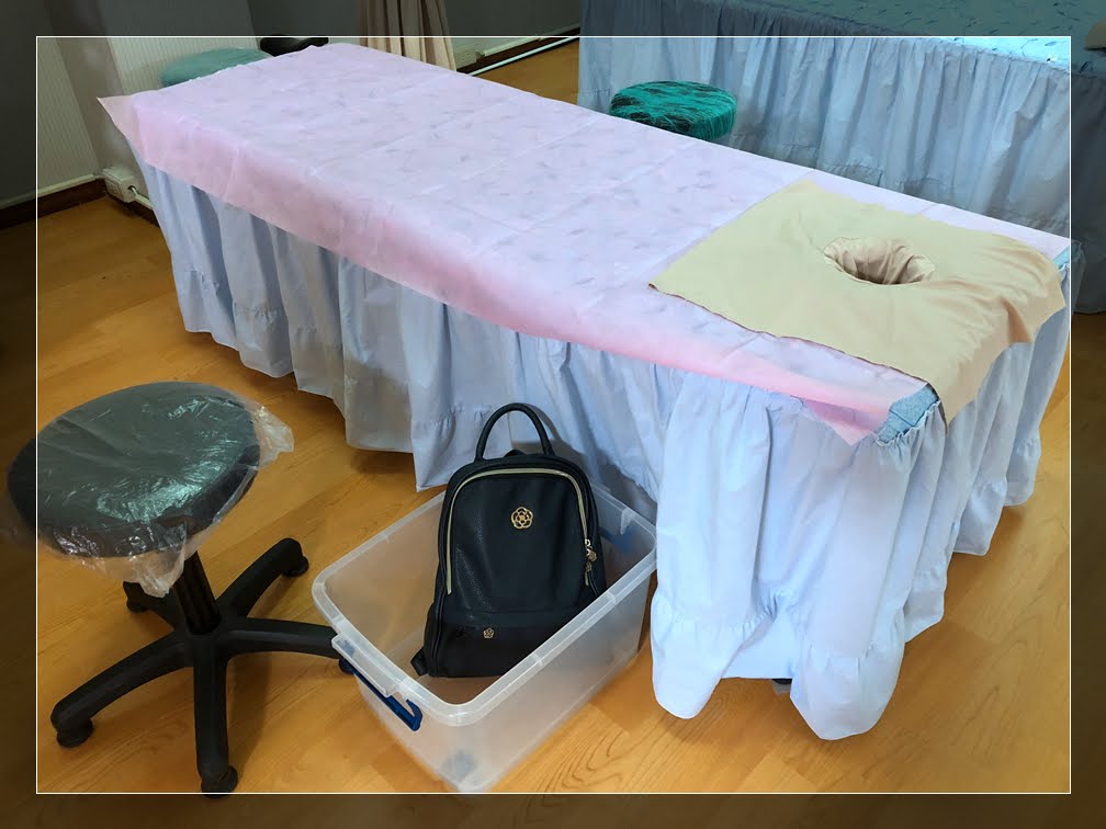 現場有10張按摩床,間隔算是蠻近,適合約親朋好友一起來。像小麻雀前往的當天,就有兩位好友相約一起來保健呢。 每個客戶都有專屬的不織布床巾、臉部面罩、墊腳枕、跨枕、純棉毛巾……等。每張床底下都有置物籃,可以放包包之類的物品。