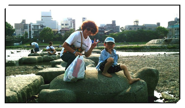很久之前聽過一部電影叫做《鴨川荷爾摩》,以前總把它看成鴨川賀爾蒙,哈!那是第一次對「鴨川」有印象,但一直沒把它認真放心上,看網友介紹說這裡是夏日納涼的好所在,也有好玩的「跳烏龜」,心想這次一定要來試試!「跳烏龜」是蝦米?就是有一整排烏龜造形的石頭,跨越在鴨川中央,讓妳可以從川的這頭跳石頭跳到那頭,簡單來說就是跳石頭啦,只是這些石頭是超大的烏龜造型。而「鴨川」更是貫穿京都的偉大川流啊~