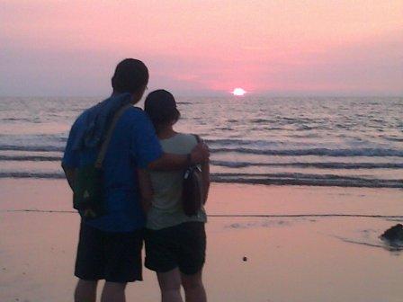 這一天送女兒返回新竹學校,途經咖啡店小憩,暑氣全消,全家人興起去海邊看夕陽,女兒提議近竹北有處沙灘景色不錯,可能去的人還不會太多。 車子從西濱快速道路彎進村間巷道,一路轉了好幾個彎,直抵小小的停車場,下了車後頂著夕陽走向海的那邊。 忽見有如一彎新月的平坦沙灘,大伙脫了鞋狂奔.......
