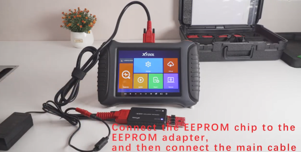 How to read EEPROM data by XTOOL X100 PAD3? Connect EEPROM adapter and X100 PAD Elite main unit by main cable Then connect the power supply adapter before operating