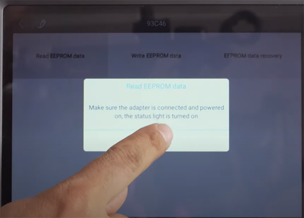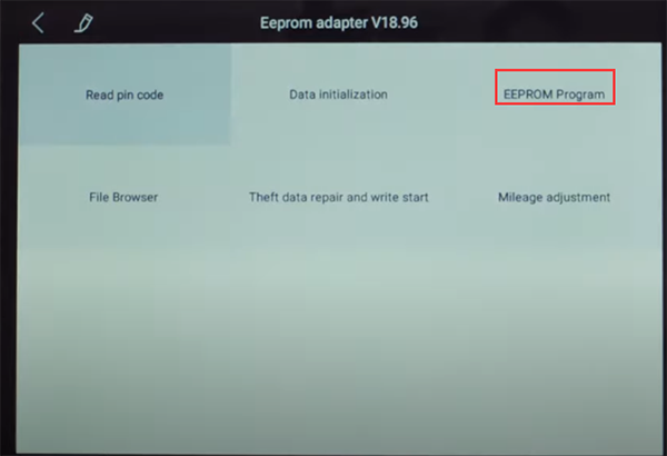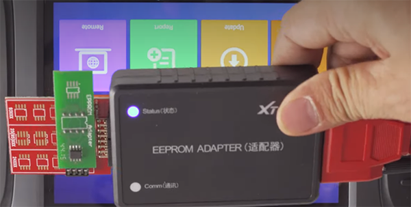 Note: when the connection is normal, the status indictor light will be on Enter X100 pad3 main menu Select Diagnosis-> Other service-> EEPROM Adapter-> EEPROM Program